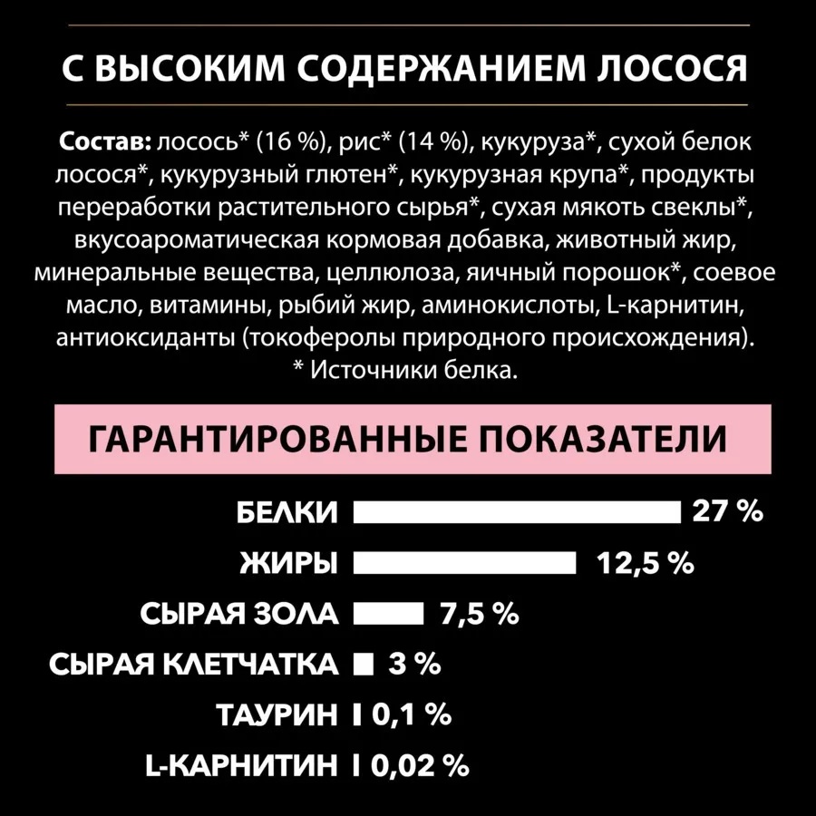 • Лосось – ингредиент N1 в составе.